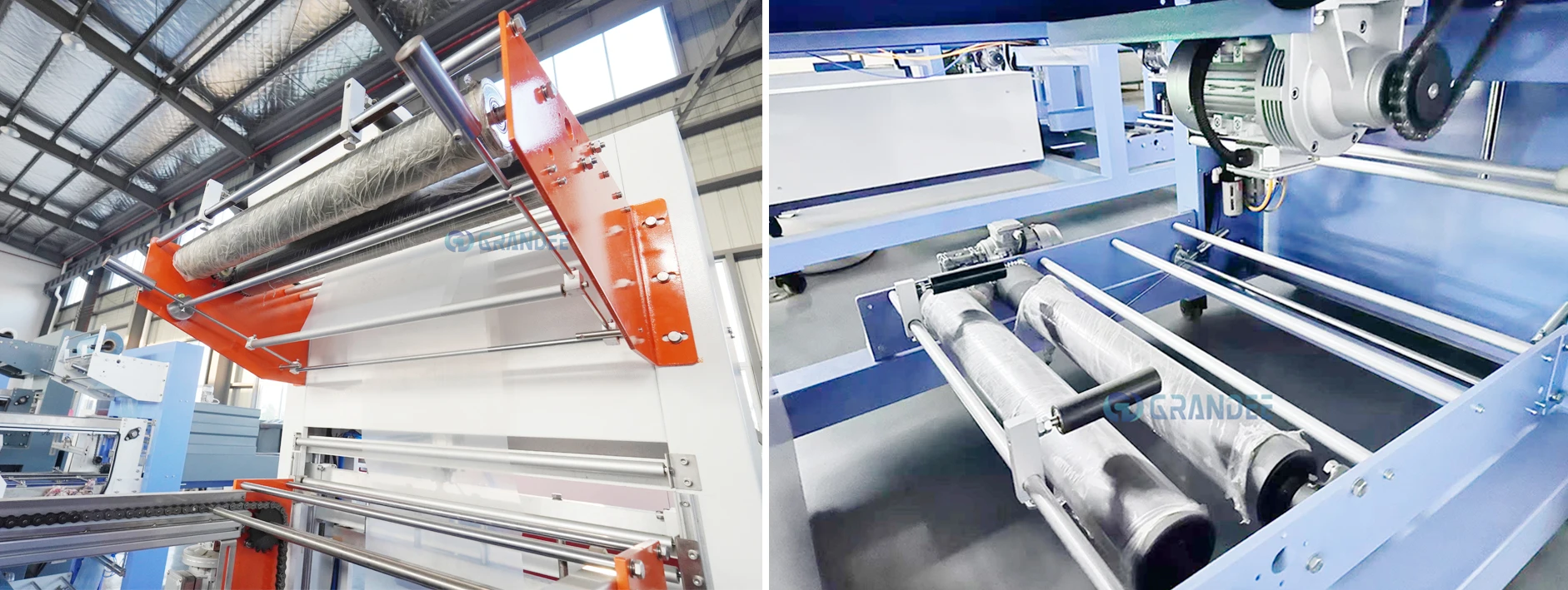 1.Pelat tekan yang dapat disesuaikan membimbing, meratakan, dan mengamankan film lebar besar selama proses pengumpanan/pembungkusan—memungkinkan operasi kecepatan tinggi.