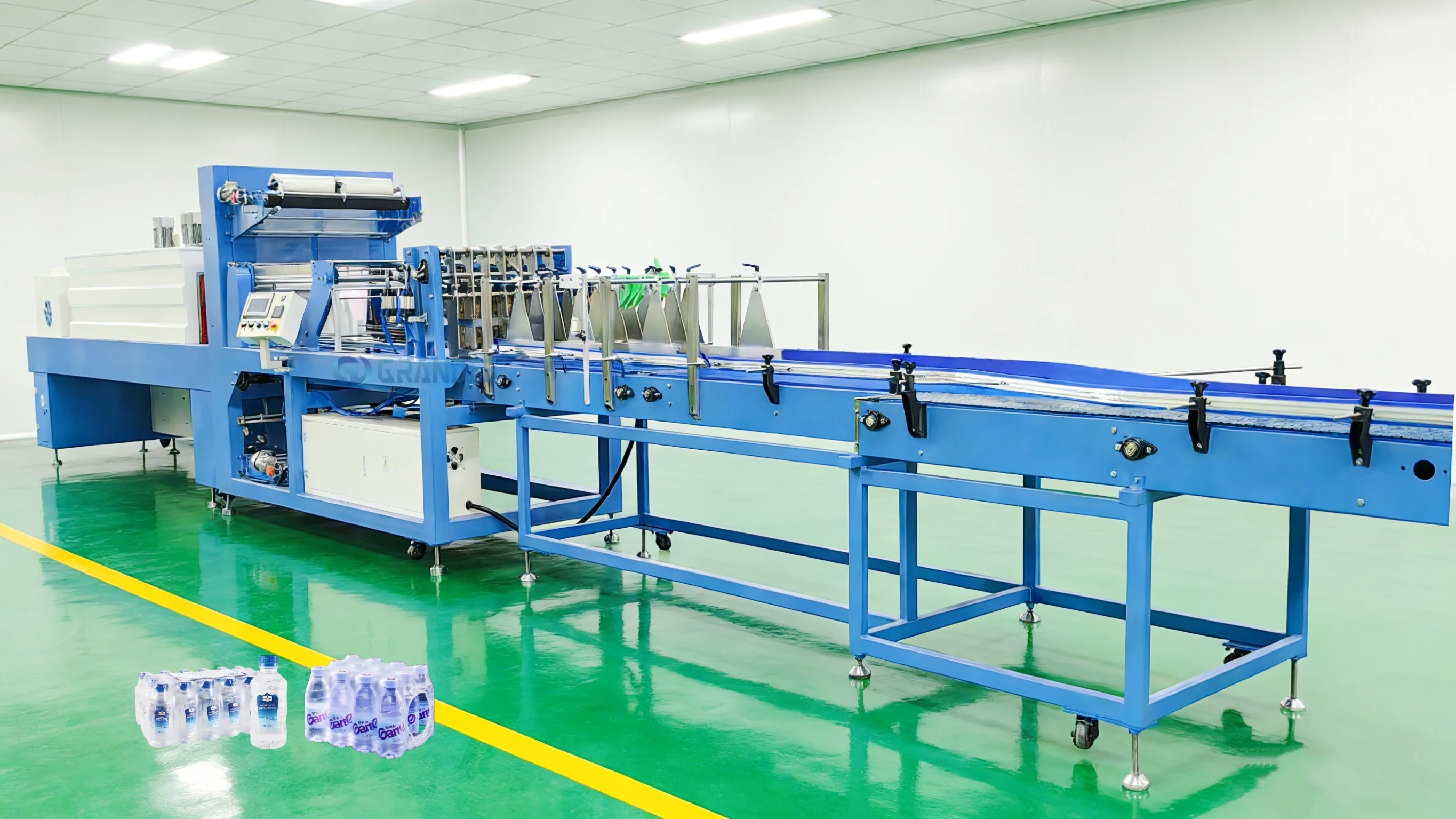 Mesin Kemasan Susut Tipe Linear Efisiensi Tinggi untuk Botol Menggunakan Film PE untuk Mengemas Botol Minuman