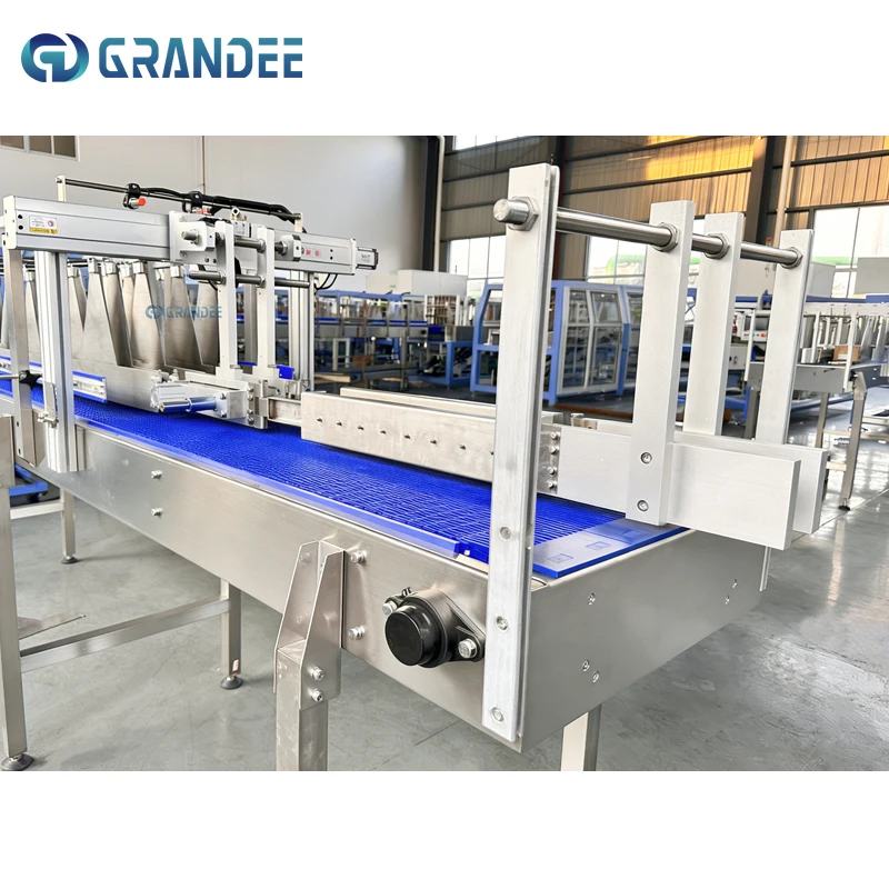 Mencapai pemisahan antrean dan kontrol jarak yang presisi untuk wadah multi-baris sebelum memasuki proses pembungkusan menyusut