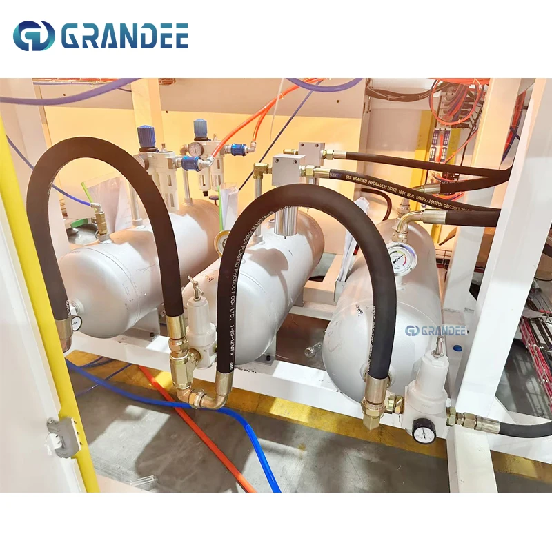 3.サーボ空圧システムを使用してボトルの形状を成形し、金型の精密制御と自動ブロー成形を実現