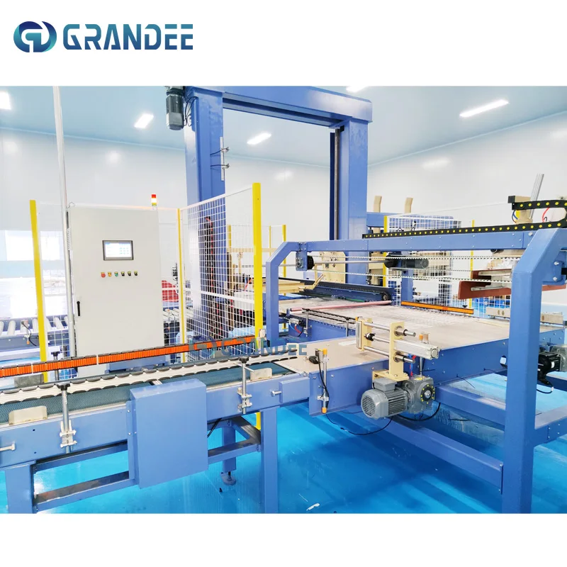 Сыйкырча иштөө жана көп катмардуу оролоо мүмкүнчүлүгү бар камыч шишелер үчүн интеллектуалдуу автоматтык робот паллетизаторы