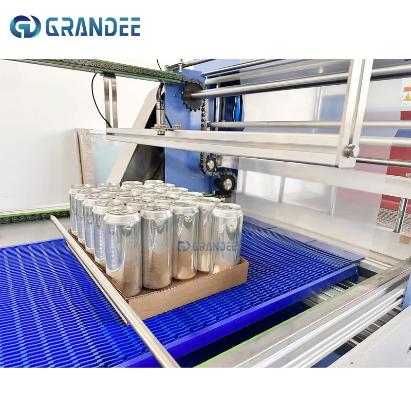 Автоматическая машина упаковки стеклянных бутылок и банок в полувыдвижной лоток с термоусадочной пленкой PE и картонной упаковкой